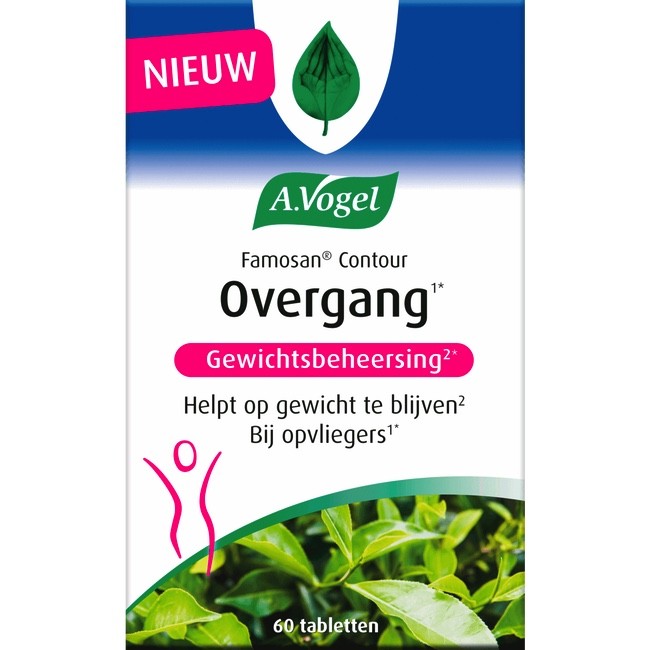 Door de hormoonschommelingen tijdens de overgang kan de stofwisseling veranderen, waardoor het soms moeilijker is om op gewicht te blijven. Ook de verdeling van vet over het lichaam kan veranderen. A.Vogel Famosan Contour helpt om op gewicht te blijven¹*, bij het behoud van het figuur¹* en bij overgangsverschijnselen²*.
