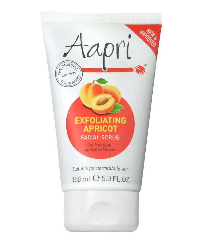 Aapri gezichtsscrub met vitamine E bevat gemalen abrikozenpitten voor een diepe reiniging en verwijdering van vuil, vet en dode huid cellen.