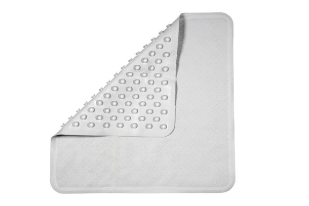 Deze rubberen douchemat heeft een geribbeld oppervlak voor meer grip.