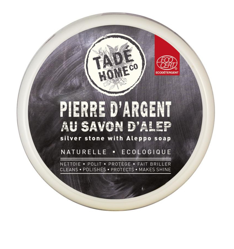 Magische "Aleppo" steen voor polijsten en ontvetten. Uniek: de enige zilverpoets met authentieke Aleppo-zeep, bevat twee ultra-reinigende actieve stoffen en werkt verbluffend goed. Een spectaculair schoonmaakproduct, Eco-cert gecertificeerd en 99,9% natuurlijk.