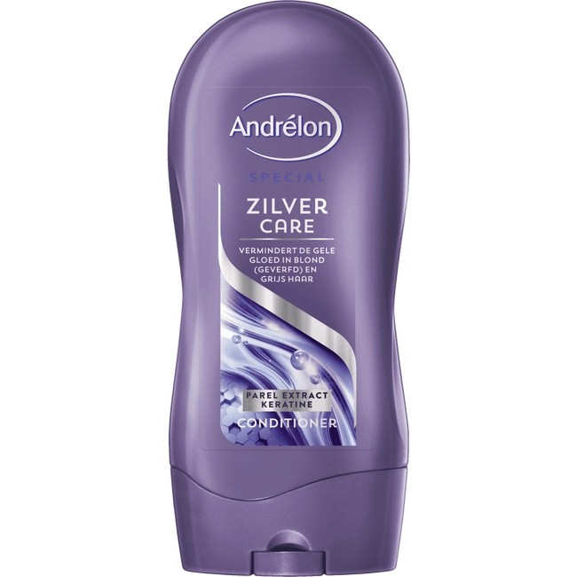 Andrélon Zilver Care Conditioner is speciaal ontwikkeld voor de bescherming van het geverfde haar, bij een gele gloed in blond en grijs haar. De conditioner, verrijkt met keratine en een UV-filter, zorgt er ook voor dat het haar na het wassen makkelijk doorkambaar is. Het haar voelt na gebruik van de Andrélon Zilver Care Conditioner weer zijdezacht aan en krijgt een stralende glans.