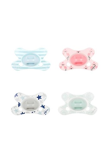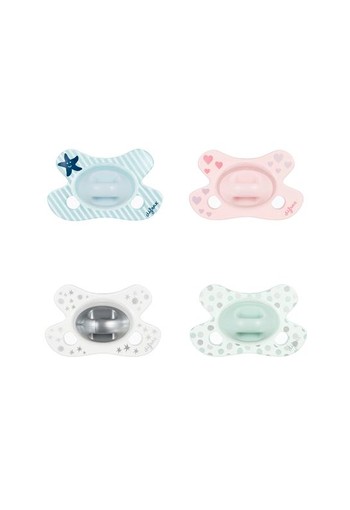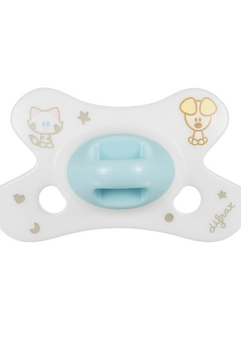 De dental fopspeen stimuleert de ontwikkeling van de kaak- en tongspieren. Het bolle gedeelte van de speen rust tegen het gehemelte en de tong drukt tegen de platte kant.