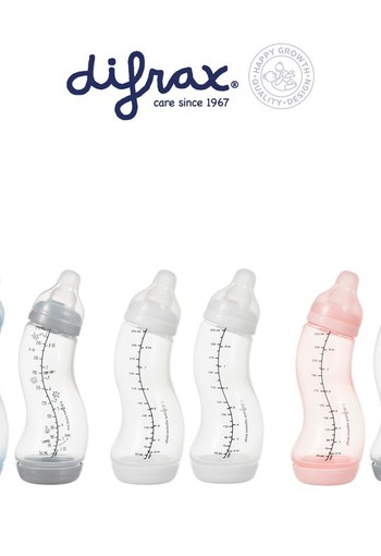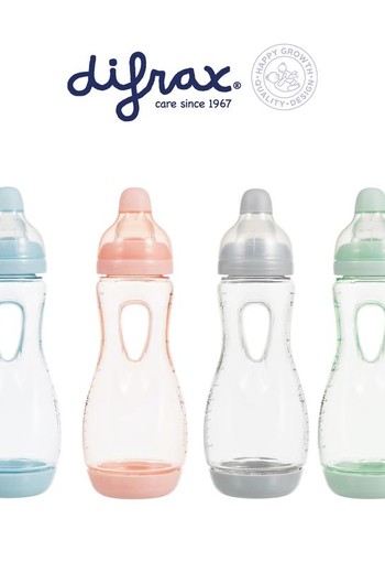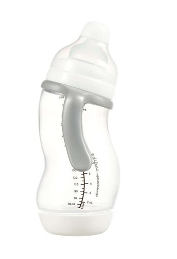 De handgreepfles is een vervolgfles van de S-fles. Kinderen kunnen de fles zelf gemakkelijk vasthouden door de ruimte in het midden en de unieke slanke vorm.
