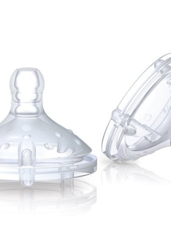 Brede tepelvormige speen waardoor baby's snel wennen aan het drinken uit een fles. De speciale zachte afwerking voelt aan als de moederborst. Hierdoor zijn borst- en flesvoeding goed te combineren.