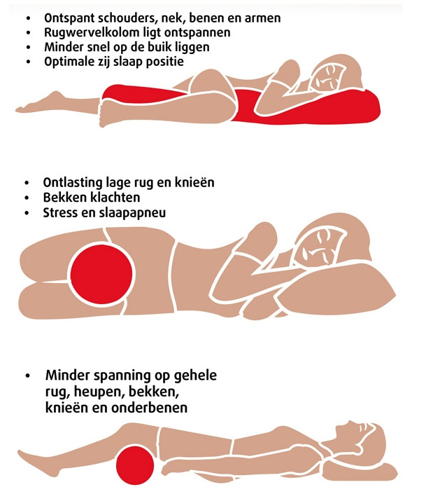 Deze positie is geschikt ter ondersteuning van de natuurlijk welving van de ruggengraat.