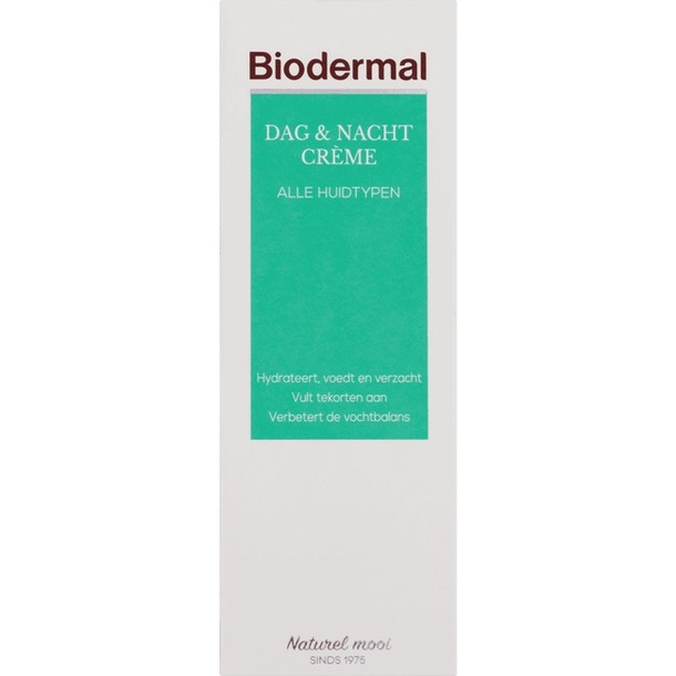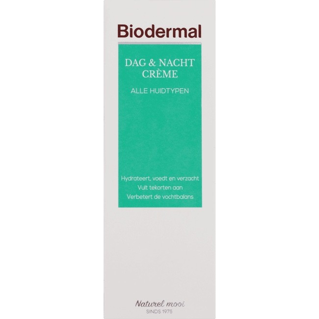 Biodermal Dag- en Nachtcrème van 100 ml is een rijke crème die de verzachtende eigenschappen van een dagcrème met de voedende en herstellende eigenschappen van een nachtcrème combineert. Voor een zachte, gevoede en stralende huid gebruik je Biodermal Dag- en Nachtcrème.