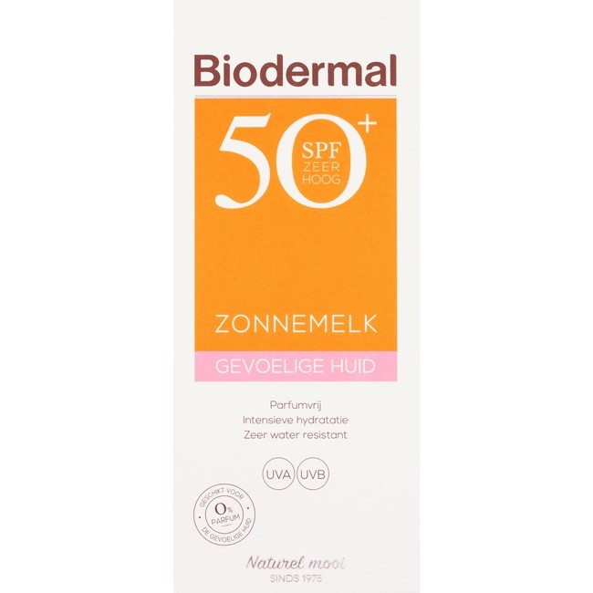 Biodermal Gevoelige Huid Zonnemelk SPF50+ bevat geavanceerde en fotostabiele UVA/UVB filters. Dit beschermt onmiddellijk tegen de schadelijke effecten van zonnestraling. De lichte formule is niet vet of plakkerig op de huid. De Zonnemelk hydrateert, verzorgt, is parfumvrij, zeer water resistent en geschikt voor de gevoelige huid.