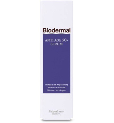 Met de jaren ontstaan er rimpels en verliest de huid haar elasticiteit en volume. Biodermal Anti Age 50+ serum is een intensief en weldadig serum dat de gevolgen van huidveroudering helpt te vervagen. De formule met hoge concentratie huideigen ingrediënten helpt het proces van huidveroudering te vertragen, verbetert de elasticiteit en helpt bestaande rimpels te verminderen. Het geeft een dagelijkse boost aan de huid en heeft een lichte en fluweelzachte textuur die gemakkelijk door de huid wordt opgenomen. Het Anti Age serum is daarom de ideale basis voor ieder Anti Age regime. Voor een egale, stralende huid.