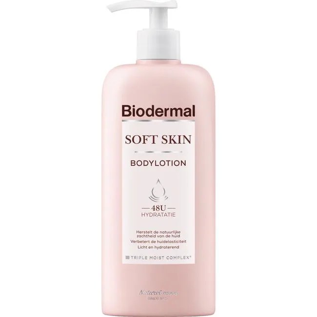 Biodermal Soft Skin Bodylotion is een lichte, zijdezachte lotion met heerlijk zachte geur. De lotion is speciaal ontwikkeld voor de normale huid en trekt snel in. De formule is verrijkt met het Triple Moist Complex, een combinatie van effectieve, hydraterende ingrediënten voor directe, intensieve en langdurige hydratatie tot wel 48 uur lang. Zo behoudt en herstelt de lotion de natuurlijke zachtheid van de huid en wordt de huidelasticiteit verbeterd. Met als resultaat een voelbaar zachte, soepele en gladde huid. Dermatologisch getest Werking
