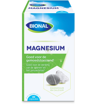 Bional Magnesium bevat magnesium en calcium. Deze mineralen zijn speciaal geselecteerd om je spieren en zenuwen optimaal te ondersteunen. Het magnesium is goed voor de werking van je zenuwstelsel en spieren, en het calcium helpt je spieren goed te functioneren en ondersteunt het behoud van sterke botten. Daarnaast bevat Bional Magnesium Vitamine B2, dat net als magnesium extra energie geeft bij vermoeidheid en de werking van je zenuwen ondersteunt.