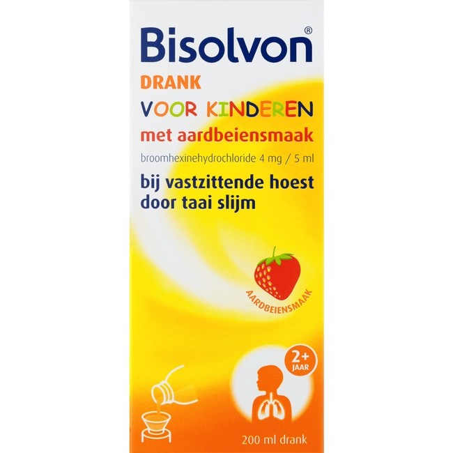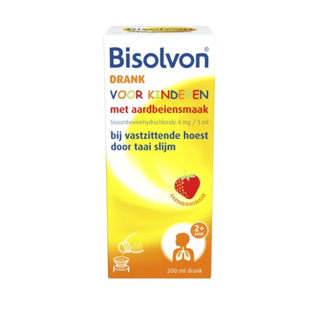 Bisolvon Drank Voor Kinderen Met Aardbeiensmaak helpt je kinderen om van het vervelende slijm dat bij een vastzittende hoest hoort, af te komen. De Bisolvon Drank Voor Kinderen is geschikt voor kinderen vanaf twee jaar.