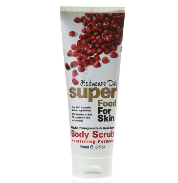 Bodycare Deli - superfood for skin - body scrub Pomegranate & Açai Berry heeft een verzachtende en verzorgende werking. De granaatappel is rijk aan vitamine C en ijzer en de açaibes zit boordevol anti-oxidanten die de huid er jonger uit laten zien.