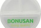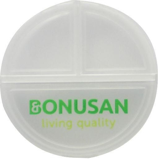 Bonusan Pillendoosje speciaal voor uw Bonusan producten in tablet- of capsulevorm. Het Bonusan Pillendoosje beschikt over drie compartimenten waar u meerdere tabletten en/of capsules in kwijt kunt. Door het kleine formaat kunt u het pillendoosje gemakkelijk meenemen in uw tas of zelfs broekzak. Zo neemt u veilig uw Bonusan producten mee in de auto of op de fiets naar het werk, school of sportschool.