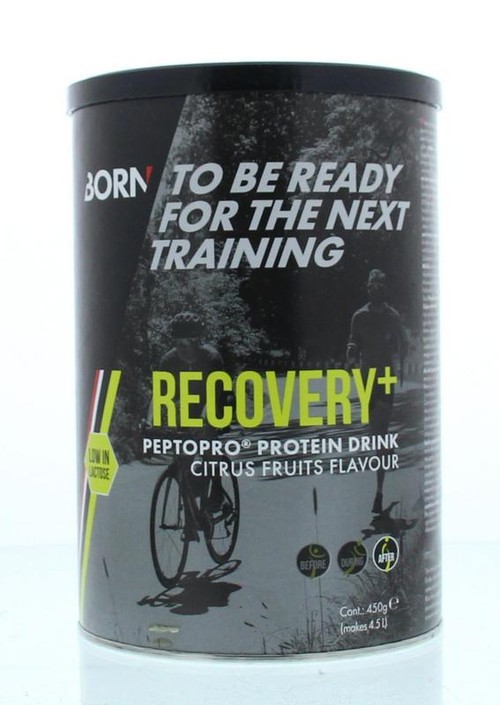 Recovery+ is een hersteldrank van de hoogste kwaliteit. Deze is ontwikkeld in samenwerking met het Team Giant-Alpecin. RECOVERY+ bevat een hogere dosis van Peptopro® per portie. PeptoPro® is een mengsel van wetenschappelijk ontwikkelde peptiden (kleine stukjes eiwit) met een zeer effectieve werking en snelle absorptie. BORN RECOVERY + bevat die aminozuren die nodig zijn voor herstel en synthese van spiercellen. Het helpt het lichaam om de batterij op te laden.