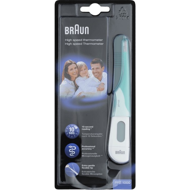 Braun High Speed Thermometer PRT1000 met zachte flexibele tip is een snelle digitale stickthermometer die je professionele nauwkeurigheid biedt. De thermometer met één geheugenfunctie meet in tien seconden je tempratuur.