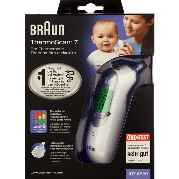 Braun IRT6520WE Infrarode Oorthermometer met ager precision technologie (instelbare leeftijd) is te gebruiken voor de gehele familie. Meet de lichaamstemperatuur snel, gemakkelijk en nauwkeurig. Braun ThermoScan, de meest gebruikte en door artsen aanbevolen thermometer.
