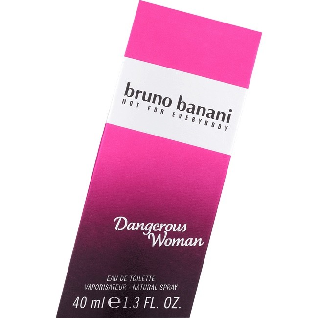 Bruno Banani Dangerous Woman Eau De Toilette 40 ml is een bloemige, verleidelijke en vrouwelijke geur. De topnoten bestaan uit zwarte bessen terwijl de rijke kokosmelk in combinatie met bloemen de hartnoten vullen. De warme basisnoten bestaan uit heliotroop die versmelt met gourmand noten. Bruno Banani Dangerous Woman is krachtige geur die onmisbaar is voor de perfecte finishing touch.