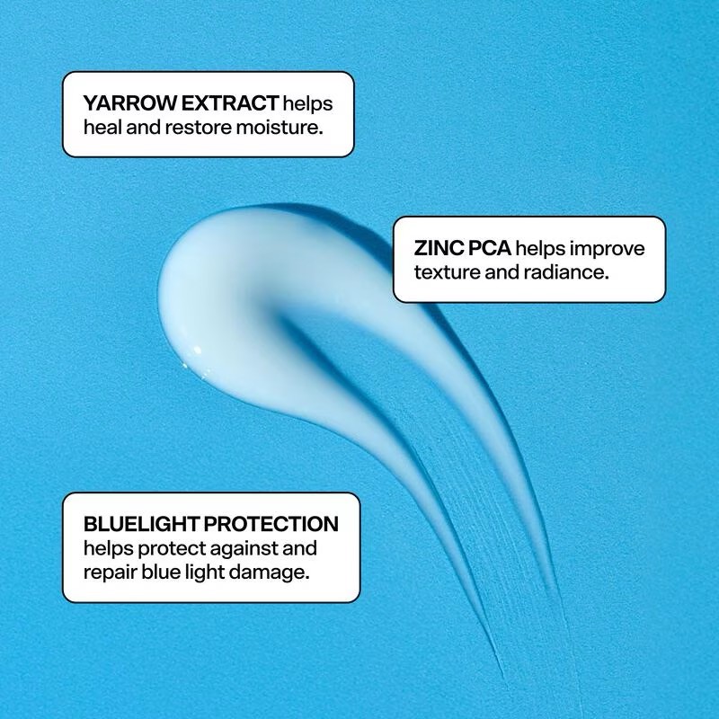 - Zink PCA + niacinamide helpen bevorderen textuur en een stralen de huid. Duizendbladextract helpt te genezen en vocht te herstellen. Onze Bluelight-bescherming is een mengsel van superfood-proteïne dat de bescherming tegen en het herstel na blootstelling aan blauw licht bevordert.