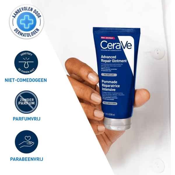 CeraVe Intensieve Herstellende Balsem biedt een antwoord op de problemen van een droge, ruwe, beschadigde en kwetsbare huid. Deze balsem helpt de natuurlijke huidbarrière te herstellen en vocht vast te houden voor langdurige hydratatie en onmiddellijke verlichting van irritaties. De geavanceerde formule is gebaseerd op 3 zorgvuldig geselecteerde ingrediënten, waaronder vaseline, hyaluronzuur en 3 essentiële ceramiden, die een barrière op het huidoppervlak vormen om de huid te beschermen, vochtverlies te voorkomen en ongemakken te verzachten. Dit veelzijdige product is geschikt voor het gezicht, lichaam en zelfs de lippen.