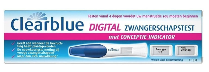 De Clearblue Digital zwangerschapstest met Conceptie Indicator zegt of je 'Zwanger' of 'Niet zwanger' bent, maar ook de duur van je zwangerschap. De test is ruim 99% nauwkeurig, vanaf de eerste dag dat je menstruatie zou moeten beginnen.