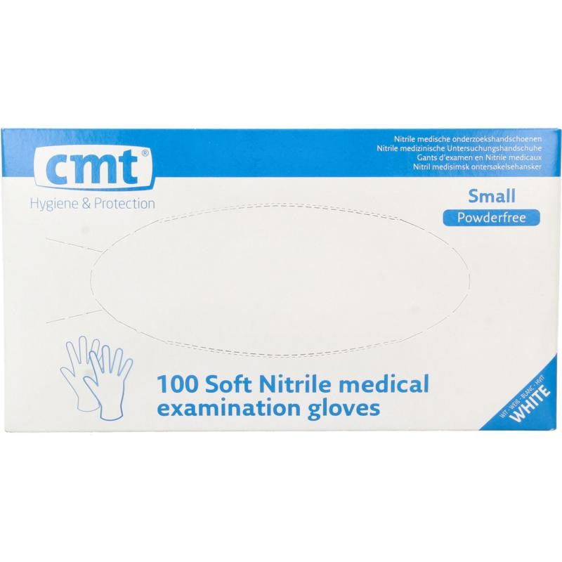 CMT Onderzoekshandschoen nitriel wit poedervrij maat S (100 Stuks)