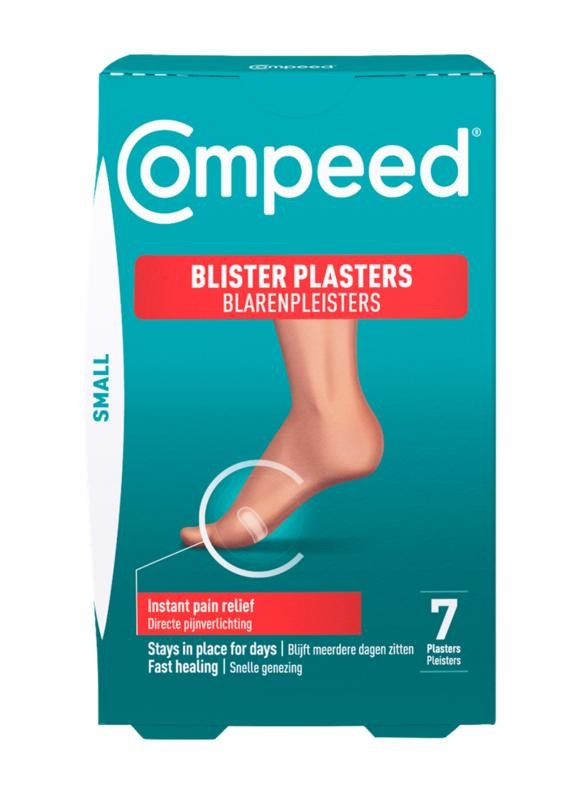 COMPEED® Blarenpleisters Small absorberen het overtollig vocht en vormen een beschermend kussentje, waardoor de pijn onmiddellijk wordt verlicht en de omstandigheden voor de genezing van voetblaren optimaal zijn.