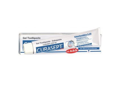 Curasept Gel Tandpasta verhindert veilig en betrouwbaar de groei van bacteriële plaque. De Curasept Gel Tandpast met 0,20% chloorhexidine en ADS 720 wordt aangeraden na (chirurgische) ingrepen in de mond, voor of na interventies. Deze gel tandpasta geeft aanvullende ondersteuning wanneer wanneer gespoeld wordt met Curasept Mondspoelmiddel 0,20% chloorhexidine.