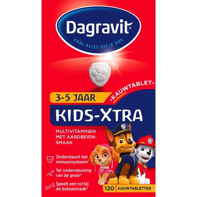 Dagravit Kids Xtra Multivitaminen 3-5 Jaar Kauwtablet Aardbeiensmaak 120 EA, tablet 120 stuks tablet