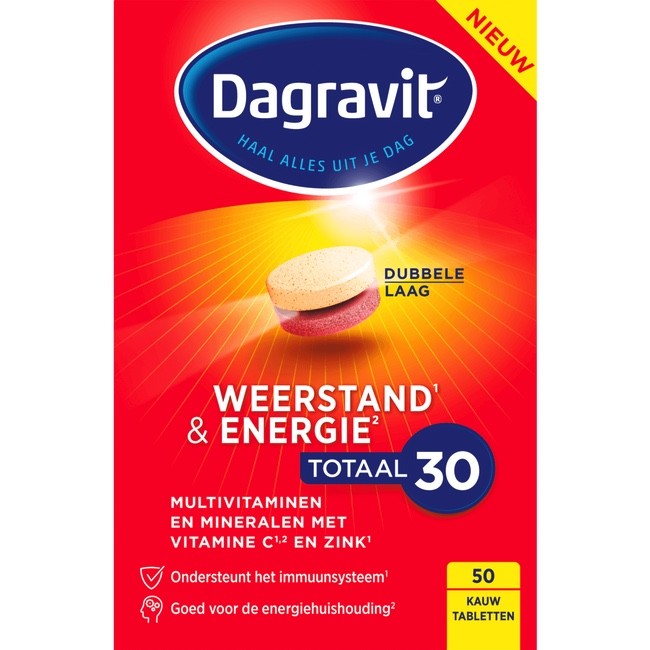 Dagravit Totaal 30 Weerstand & Energie Kauwtabletten 50 stuks