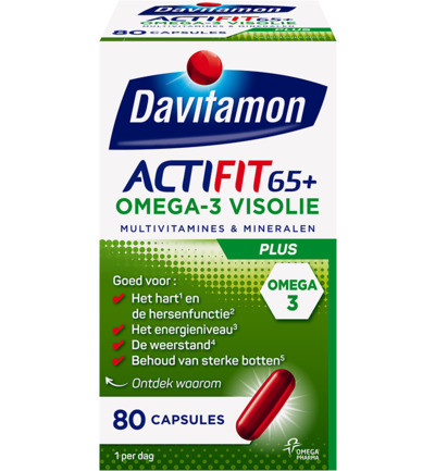 Davitamon Actifit 65+ omega 3 is een voedingssupplement voor volwassenen vanaf 65 jaar.