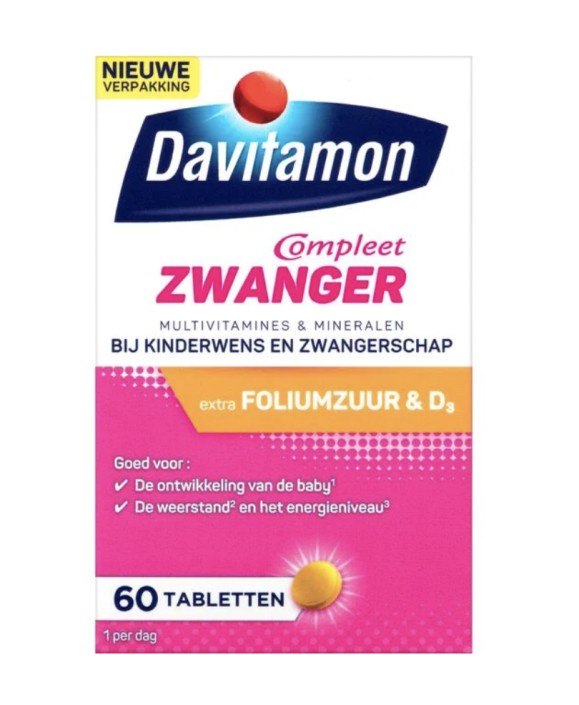 Davitamon Compleet Zwanger is een voedingssupplement speciaal afgestemd op de behoefte van je lichaam als aanstaande moeder. Davitamon Compleet Mama bevat extra foliumzuur, 200% van de ADH, en draagt hierdoor bij aan de ontwikkeling van de baby en de vorming van de placenta. De tabletten bevatten daarnaast ook andere vitamines en mineralen en zijn hierdoor: