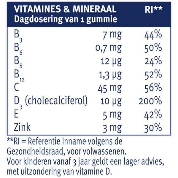 | **RI = Referentie Inname volgens de Gezondheidsraad, voor volwassenen. Voor kinderen vanaf 3 jaar geldt een lager advies, met uitzondering van vitamine D. | |||
