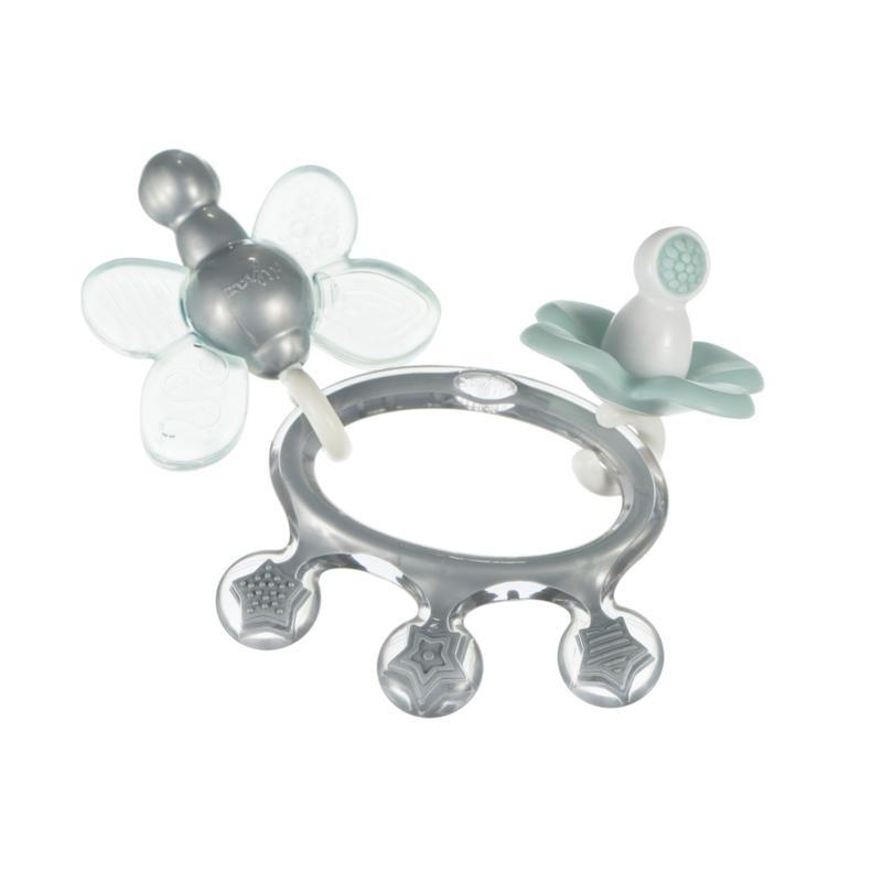 Spelen prikkelt de fantasie en zorgt ervoor dat een kindje zich motorisch ontwikkelt. Dit bijtspeeltje kan gemakkelijk worden vastgehouden door kleine kinderhanden. Dit vrolijke en unieke bijtjuweel is een leuk speeltje voor je kind, daarnaast draagt het bij aan de ontwikkeling van de kaak en verzorgt de mond. Het lijfje van de libelle verandert van kleur door een verschil in warmte. Alle delen zijn vaatwasserbestendig, niet uitkoken. PVC vrij. Elementen zijn verwisselbaar.