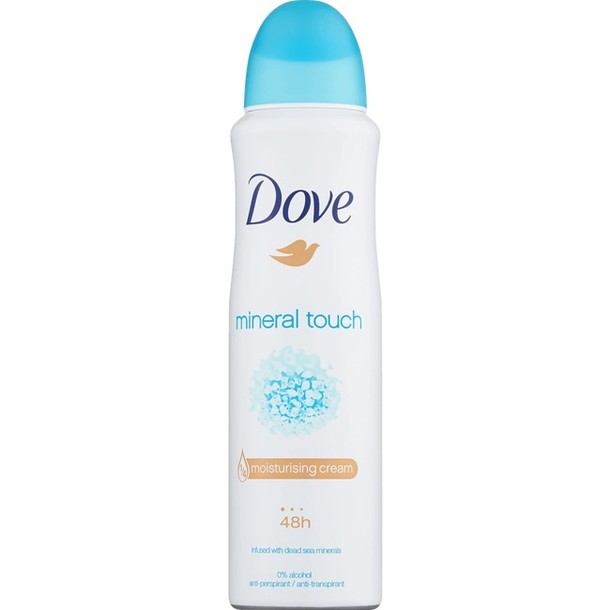 Dove Natural Touch Anti-Transpirant Spray is een onmisbare deodorant voor in de handtas van iedere vrouw. Deze alcoholvrije deodorant combineert mineralen uit de dode zee met ¼ hydraterende crème en vitamine E om de kwetsbare okselhuid optimaal te verzorgen. De huid wordt gevoed, met als resultaat zichtbaar zachtere en gladdere oksels. Dove Natural Touch Anti-Transpirant Spray beschermt de okselhuid en houd je de gehele dag droog.