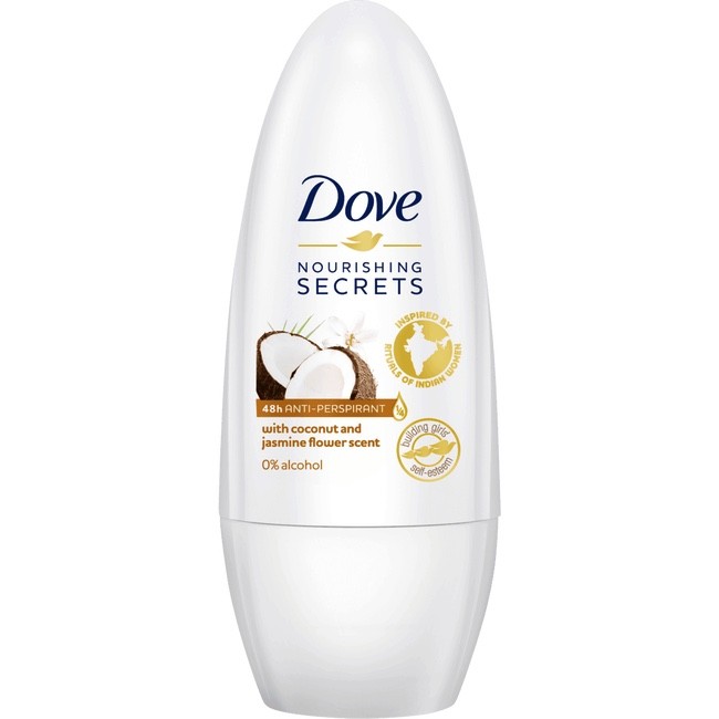 Dove Nourishing Secrets Coco & Jasmine Restoring Anti-Transpirant Roller is geïnspireerd op de schoonheidsrituelen van vrouwen uit India. De exotische geur van de anti-transpirant, verrijkt met kokosnoot en jasmijn, is een echte verwennerij voor je zintuigen. De milde 0% alcohol formule is gecombineerd met de unieke ¼ hydraterende crème van Dove en geeft je 48 uur bescherming en verzorging. Daarnaast helpt de anti-transparant roller scheerirritatie en droogheid te herstellen en verminderen.