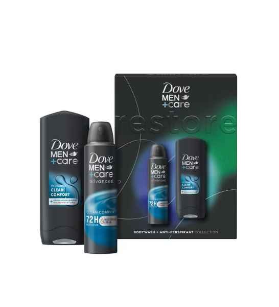 DE DOVE MEN+CARE CLEAN COMFORT GIFTSET IS HET IDEALE CADEAU VOOR DIE SPECIALE MAN IN JE LEVEN. • De ideale geschenkset voor mannen die zich graag goed verzorgen. • Inclusief Dove Men+Care Clean Comfort Douchegel 250 ml en Anti-Transpirant Spray 150ml. • De Clean Comfort Douchegel reinigt je lichaam, laat het lekker fris ruiken en helpt je huid gezond en gehydrateerd te houden. • De Clean Comfort Douchegel werkt hydraterend dankzij de MicroMoisture technologie. • De Dove Men+Care Advanced Anti-Transpirant biedt 72H bescherming tegen zweet om je op je best te voelen. • Mooie Dove Men+Care cadeauset met heerlijke producten om weg te geven of om jezelf te trakteren.