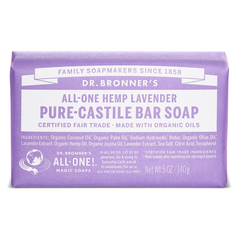 Organic Coconut Oil*, Organic Palm Oil*, Sodium Hydroxide**, Water, Organic Olive Oil*, Lavandin Extract, Organic Hemp Oil, Organic Jojoba Oil, Lavender Extract, Sea Salt, Citric Acid, Tocopherol