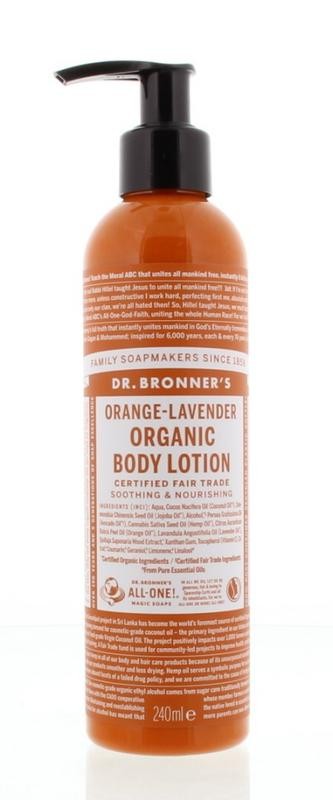 De combinatie van biologische kokosolie met lichte oranje essentiële olie geeft een zomers geurende. De biologische Dr. Bronner's Body lotions bieden uw huid een intensieve vocht explosie. De lichtgewicht maar toch rijke lotion trekt snel in is niet vet.