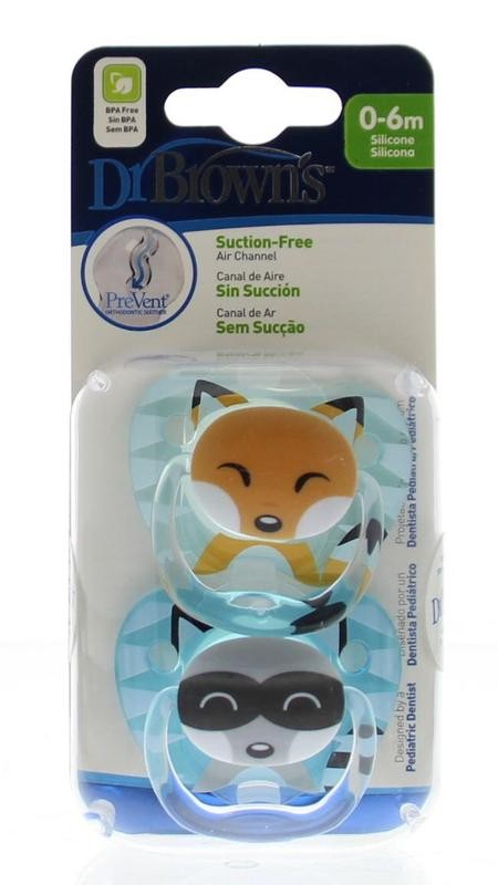 Dr Brown's Fopspeen prevent animal faces F1 blauw (2 Stuks)