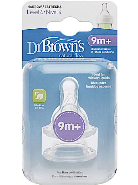 Dr. Brown's heeft diverse soorten spenen. Het verschil zit in de snelheid waarmee de voeding doorstroomt. Fase 2 vloeit sneller door dan fase 1, fase 3 sneller dan fase 2, etc.