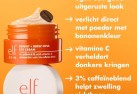 Verhelderende oogcrème verrijkt met vitamine C, banaan-getinte poeder en een 3% cafeïnemix om vermoeid ogende ogen nieuw leven in te blazen