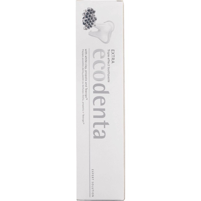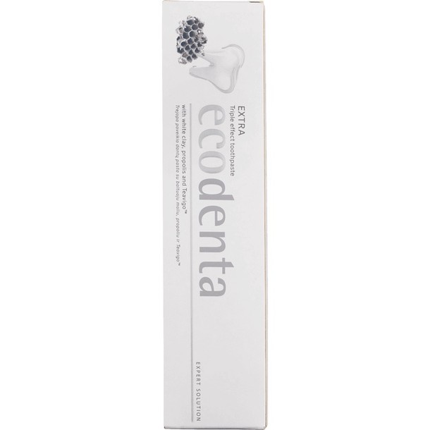 Ecodenta Triple Effect Toothpaste is een tandpasta voor de dagelijkse mondverzorging. Dankzij de ingrediënten, zoals witte klei, propolis en teavigo, verwijdert de tandpasta tandplak en vermindert de gevoeligheid van tanden en tandvlees. De verfrissende tandpasta met unieke driedubbele werking bevat 97% biologische ingrediënten en is vrij van fluoride.