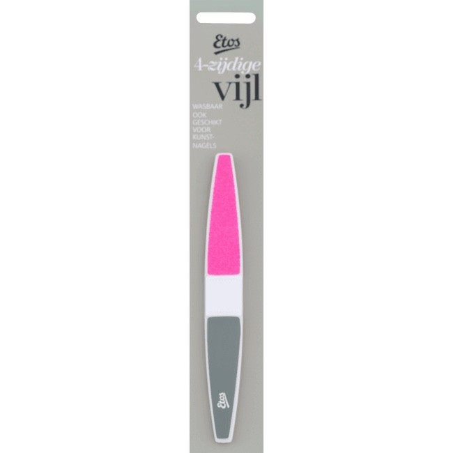 Creëer prachtig gevijlde nagels met de Etos 4 Zijdige Vijl. Je nagels kun je mooi vormgeven met de grove zijde en mediumzijde van de vijl. De vijl is ook geschikt voor kunstnagels. Met de fijne en extra fijne zijde kun je kleine haakjes wegvijlen en je nagels netjes bijvijlen. Gebruik de Etos 4 Zijdige Vijl voor een mooie vorm en glans van je nagels.