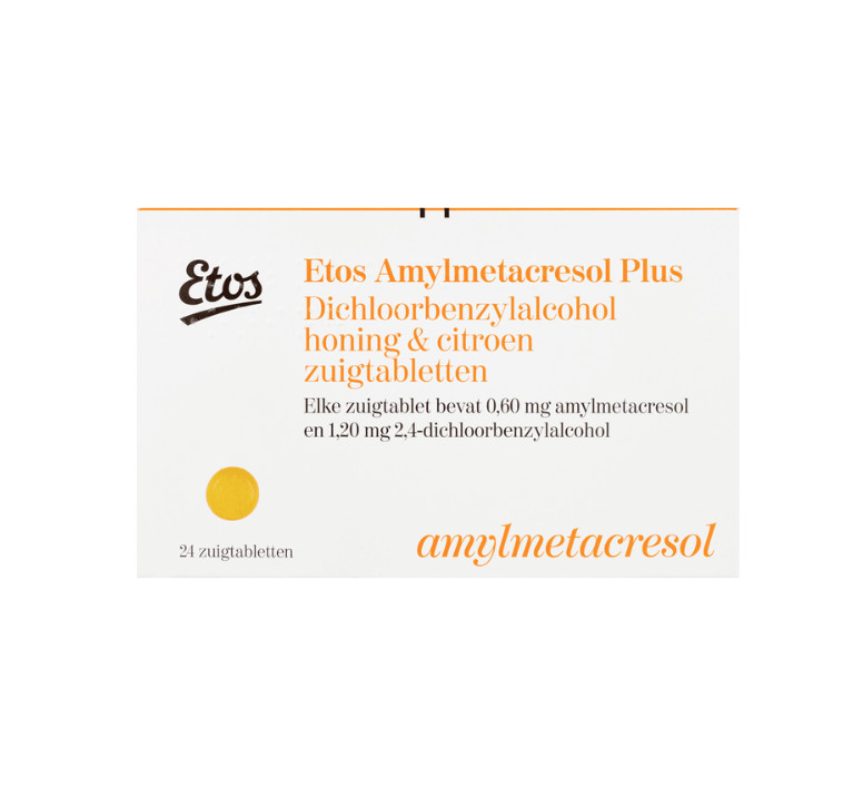 Etos Amylmetacresol Plus Dichloorbenzylalcohol Honing & Citroen Zuigtabletten ter verlichting van symptomen van keelpijn bij volwassenen en kinderen ouder dan 6 jaar.