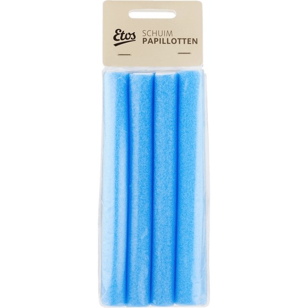 Etos Schuim Papillotten zijn ideaal voor het creëren van slag en krullen in het haar. De papillotten zijn 15cm lang. De verpakking bevat 8 blauwe schuimpapillotten.