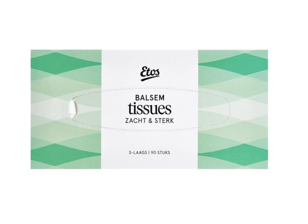 Etos Balsem Tissues 90 st bestaan uit 3 lagen, waardoor ze extra sterk zijn. De tissues zijn lekker zacht, makkelijk in gebruik en veelzijdig toepasbaar. De tissues zijn: