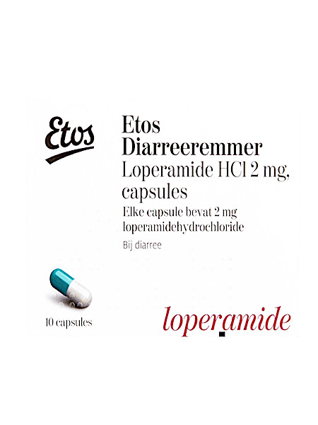 Etos Diarreeremmer Loperamide HCI 2 mg capsule bevat loperamide. Loperamide is een alleen op de darmwand werkend anti-diarreemiddel. Loperamide stopt doorgaans binnen enkele uren de diarree. Het vermindert de te sterk voortstuwende bewegingen van de darm.