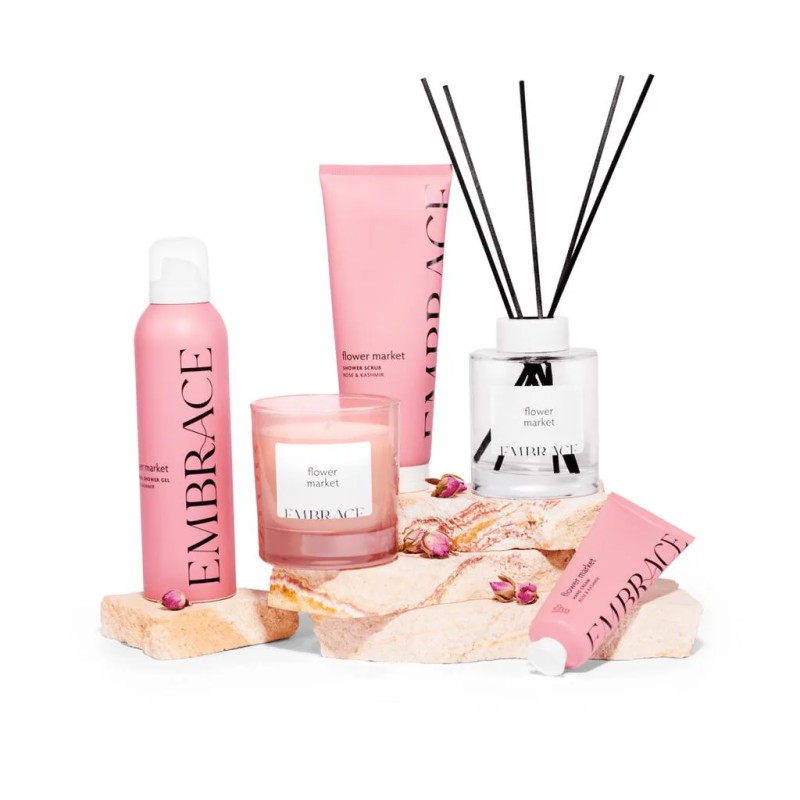 Verkrijgbaar in handzeep, handcrème, showerfoam, showerscrub, geurkaarsen, roomspray en geurstokjes.