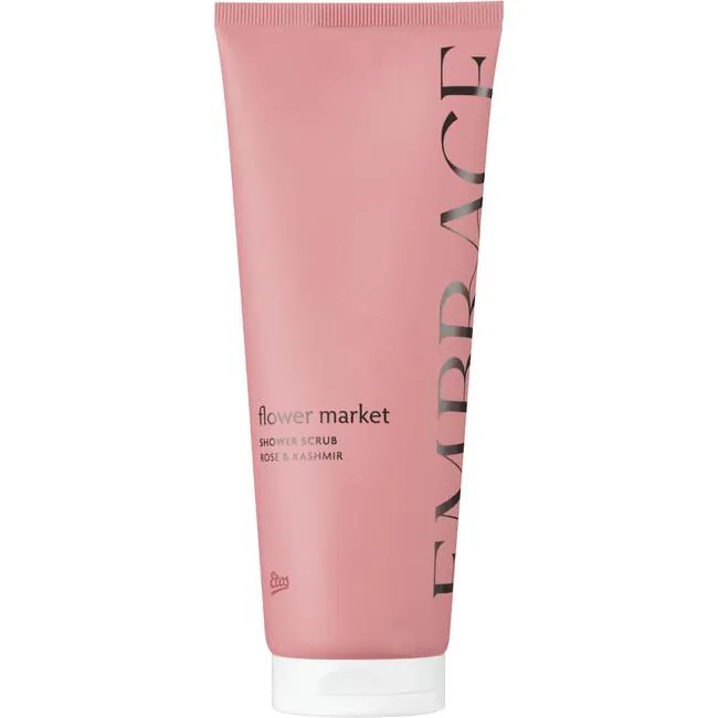 Etos Embrace Shower Scrub Flower Market 220ml is een exfoliërende douchescrub met kokosnootolie en natuurlijke abrikoos en kokosnoot scrubdeeltjes.