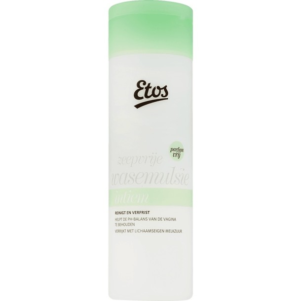De zeepvrije wasemulsie is voor de dagelijkse uitwendige reiniging van je vagina. Door toevoeging van lichaamseigen melkzuur helpt deze wasemulsie de zuurgraad (pH) van je vagina in balans te houden. De extra milde samenstelling maakt de wasemulsie geschikt voor dagelijks gebruik. Etos Intiem Zeepvrije Wasemulsie bevat geen parfum.